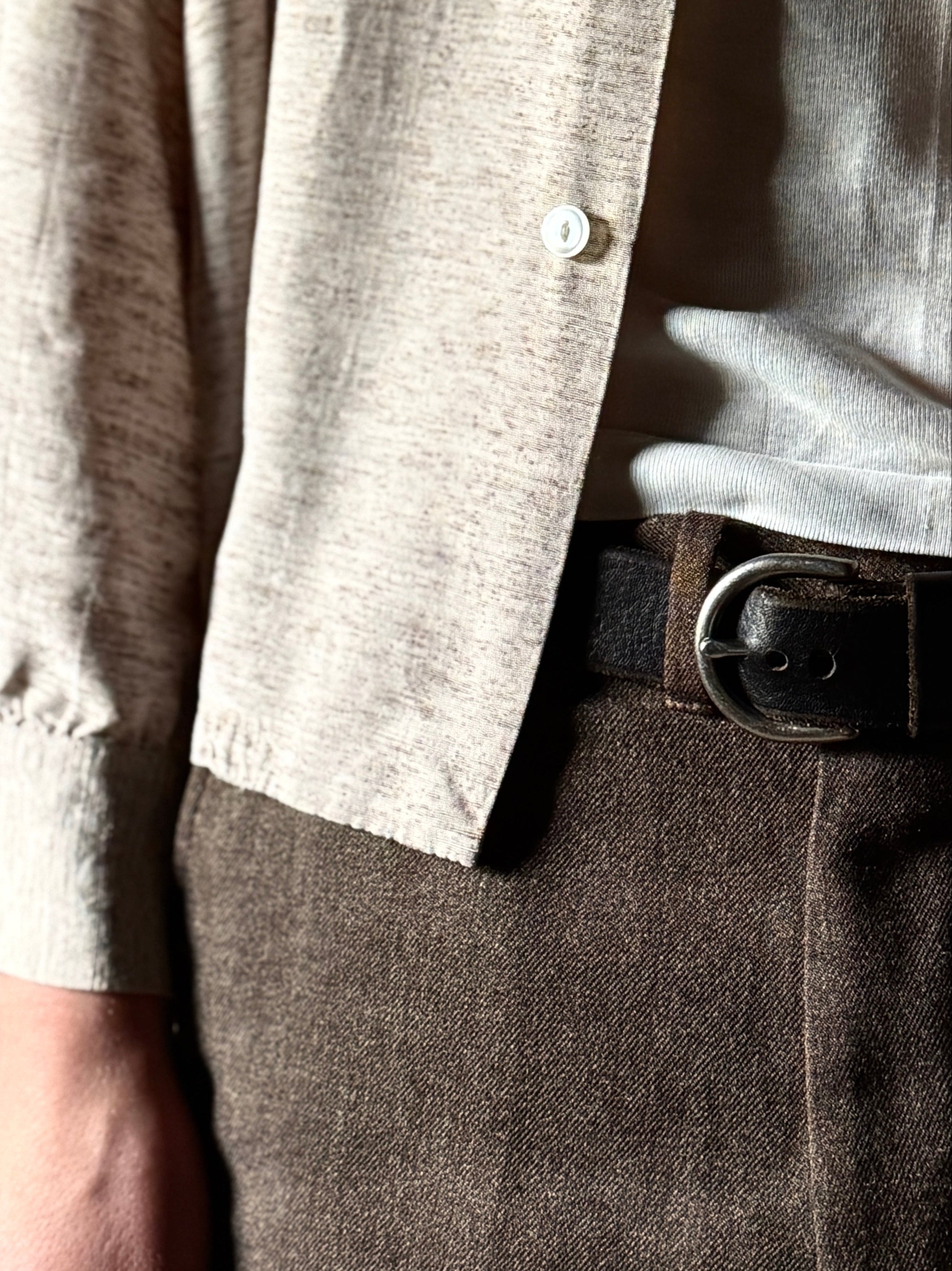 1950s Brown Shattered Plaid Loop Collar Shirt