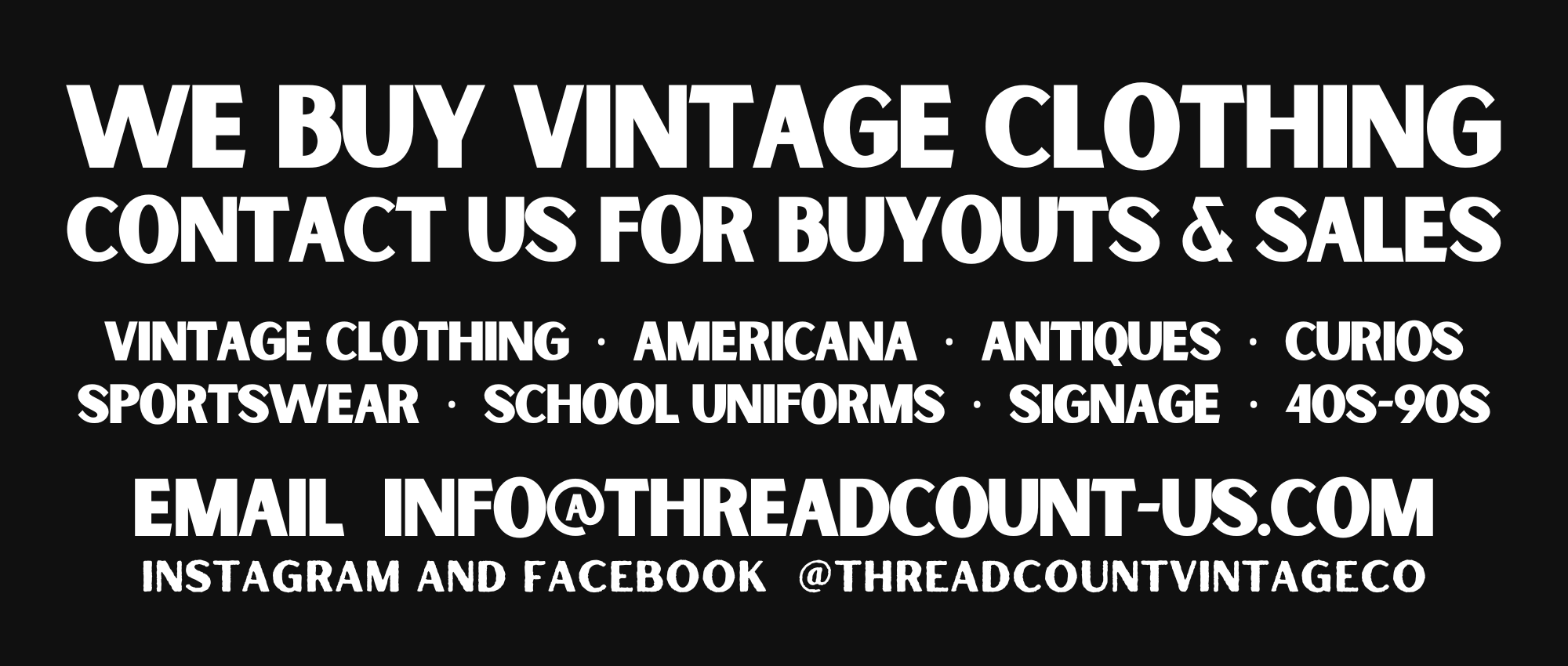 The quality of our products here at ThreadCount are close to none. Each garment is gently treated and washed with delicacy to preserve fiber content and ensure wearability for decades to come. As years go by, the cotton and other blends that these vintage clothes are spun of can begin to thin or shrink. Because of this, proper washing and up-keeping methods are very important to our shop.