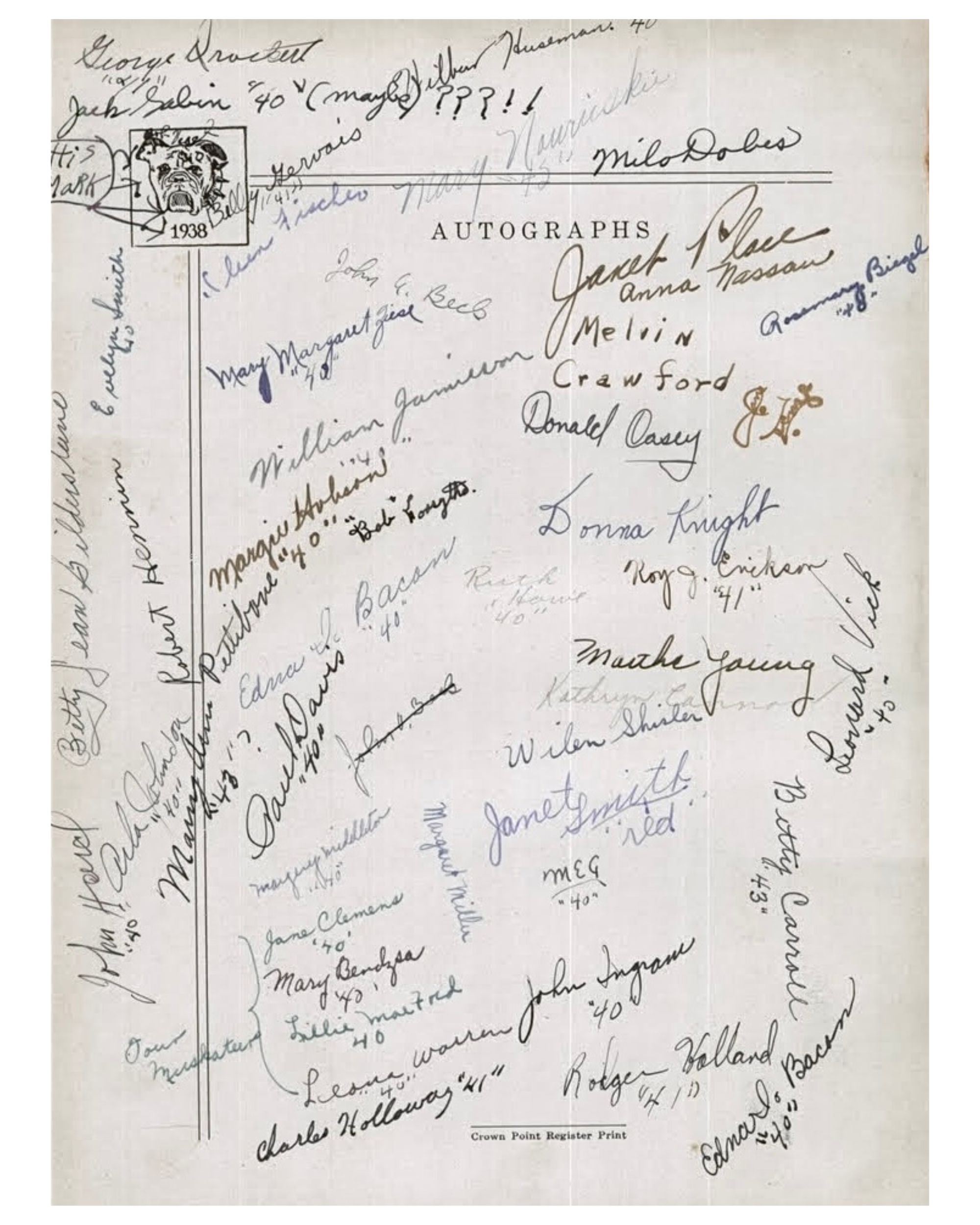 Beginning in 1904 at Purdue University of West Lafayette Indiana, a group of senior boys decided they would flaunt an exaggerated pair of corduroy trousers they saw in a local shop window. As the origins go, senior students would commision or doodle-themselves a pair of corduroy pants, decorated with hand drawings, school crests, pop culture characters, clubs, academic feats, and other striking details as a form of self-expression and individuality. You can see Crown Point alumni's version of the senior cords, sporting large drawn bulldogs and other school designs. While the fad peaked in popularity in the '50s and '60s, the quality craftsmanship and delicately formed personal mementos made for some of the Hoosier states most prized pieces of vintage memorabilia.