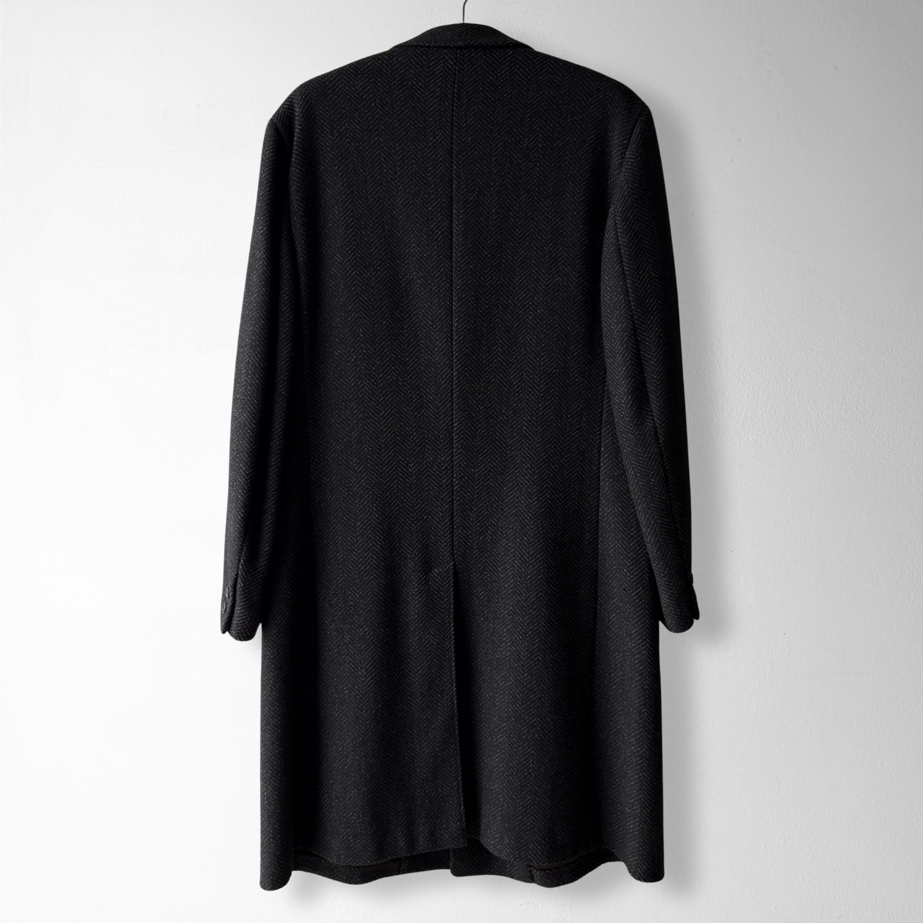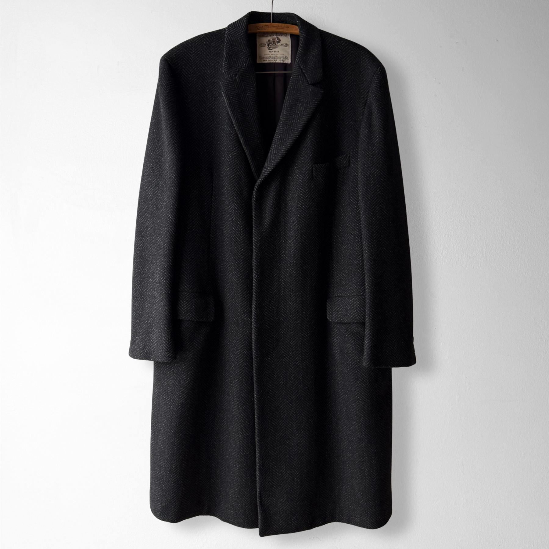 1950s Black Herringbone Wool Overcoat