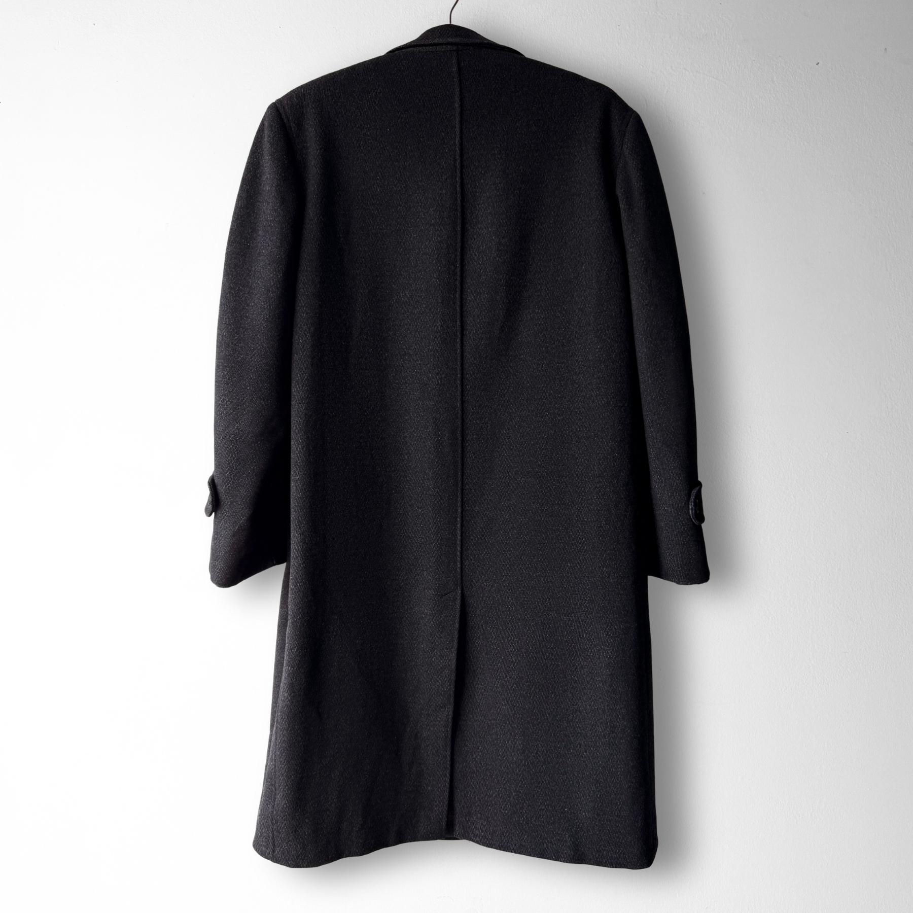 1950s Black Herringbone Wool Overcoat