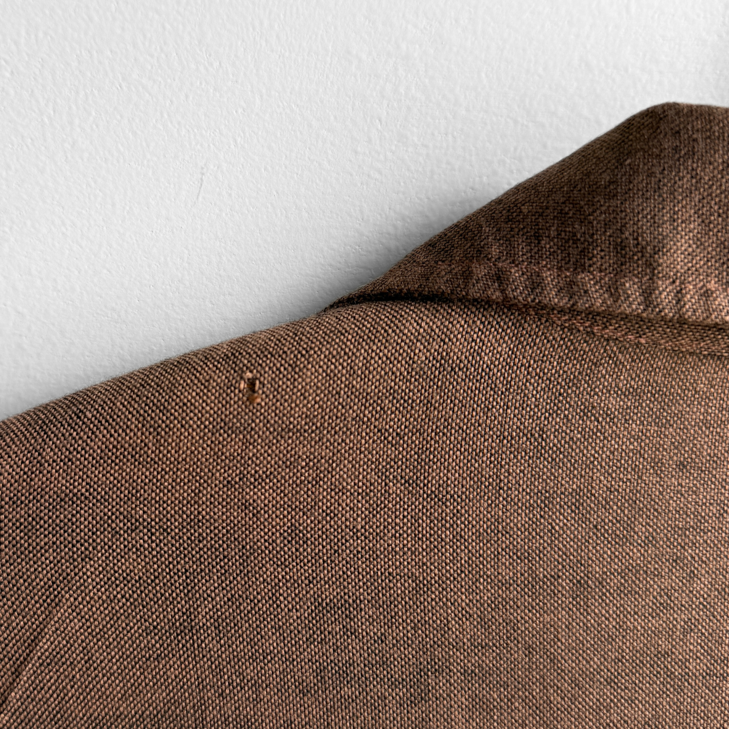 Flaws include a tiny hole in the left shoulder area behind the collar. See last photo.