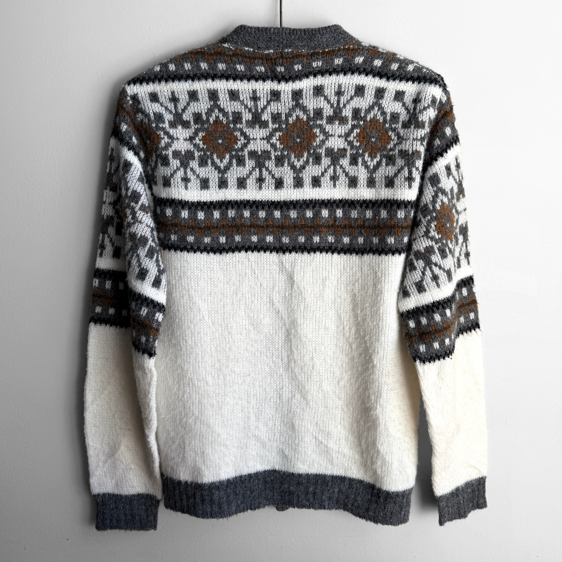 1960s Brown & Cream Pattern Knit Cardigan