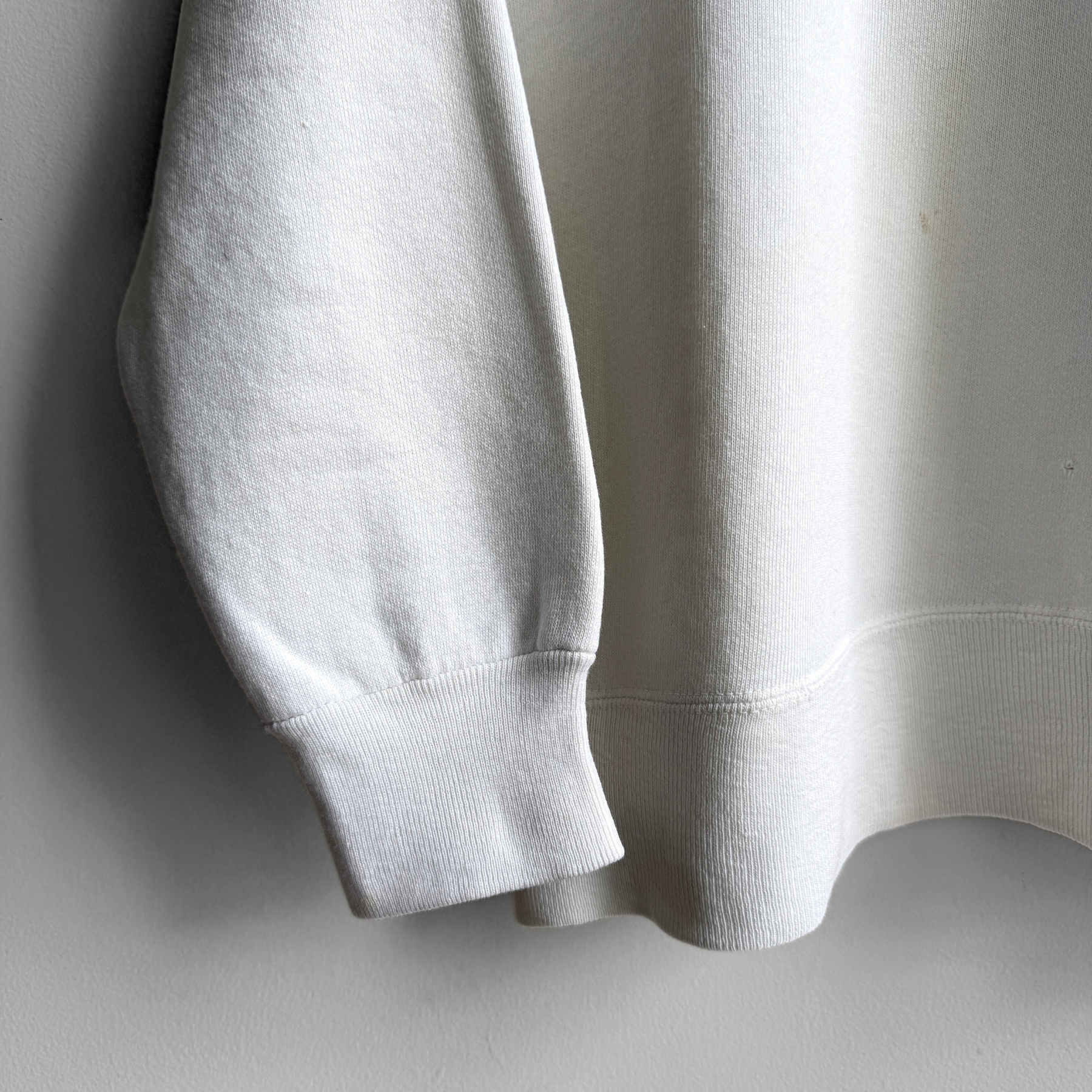 Features a bright white cotton material with the official 1962 Girl Scout Senior Roundup graphic printed on the chest, Falcon branded 3/4 quarter zip collar, and elongated, athletic-fitting wrist and waistband.