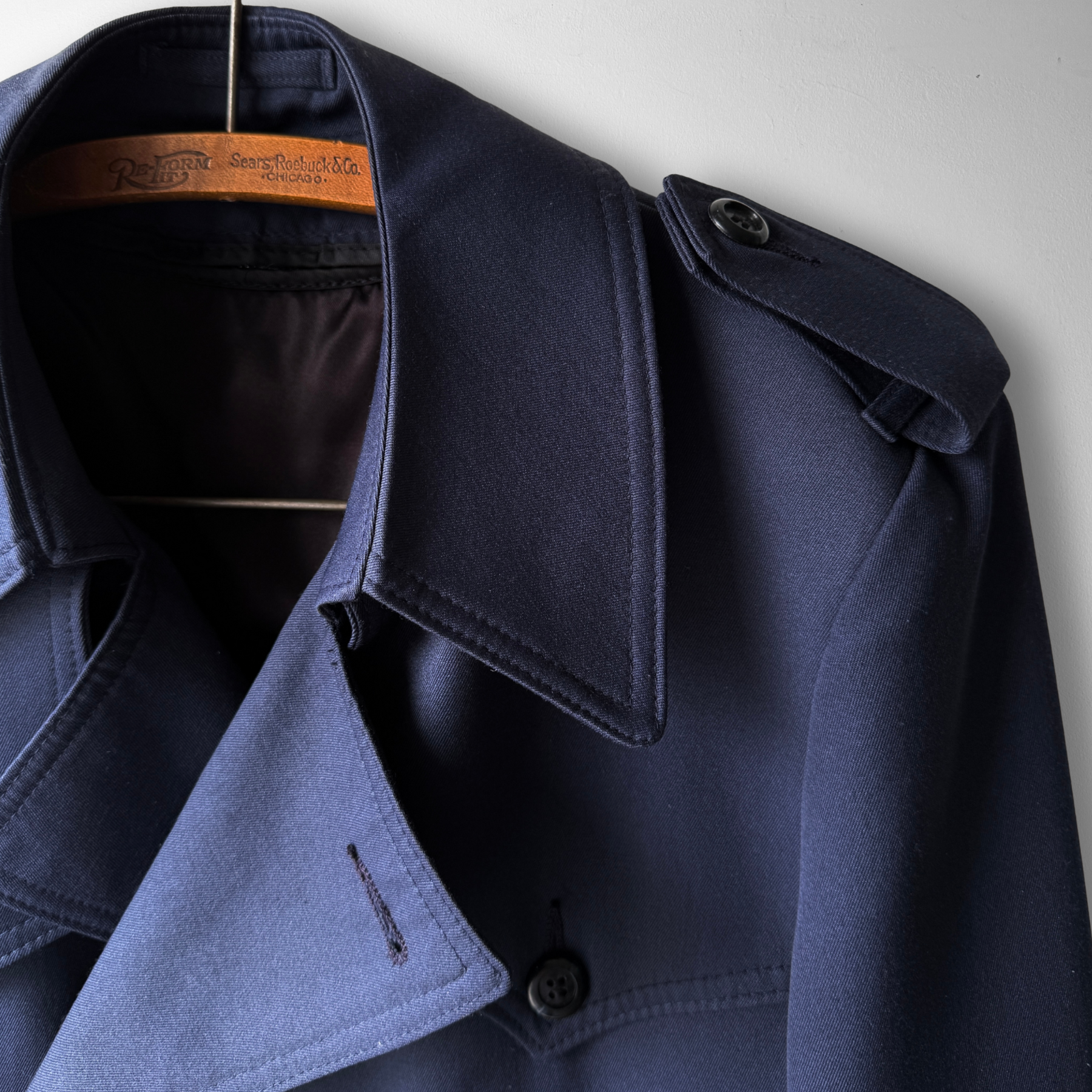 1960s Navy Blue Double Breasted Plaid Lined Trench Coat