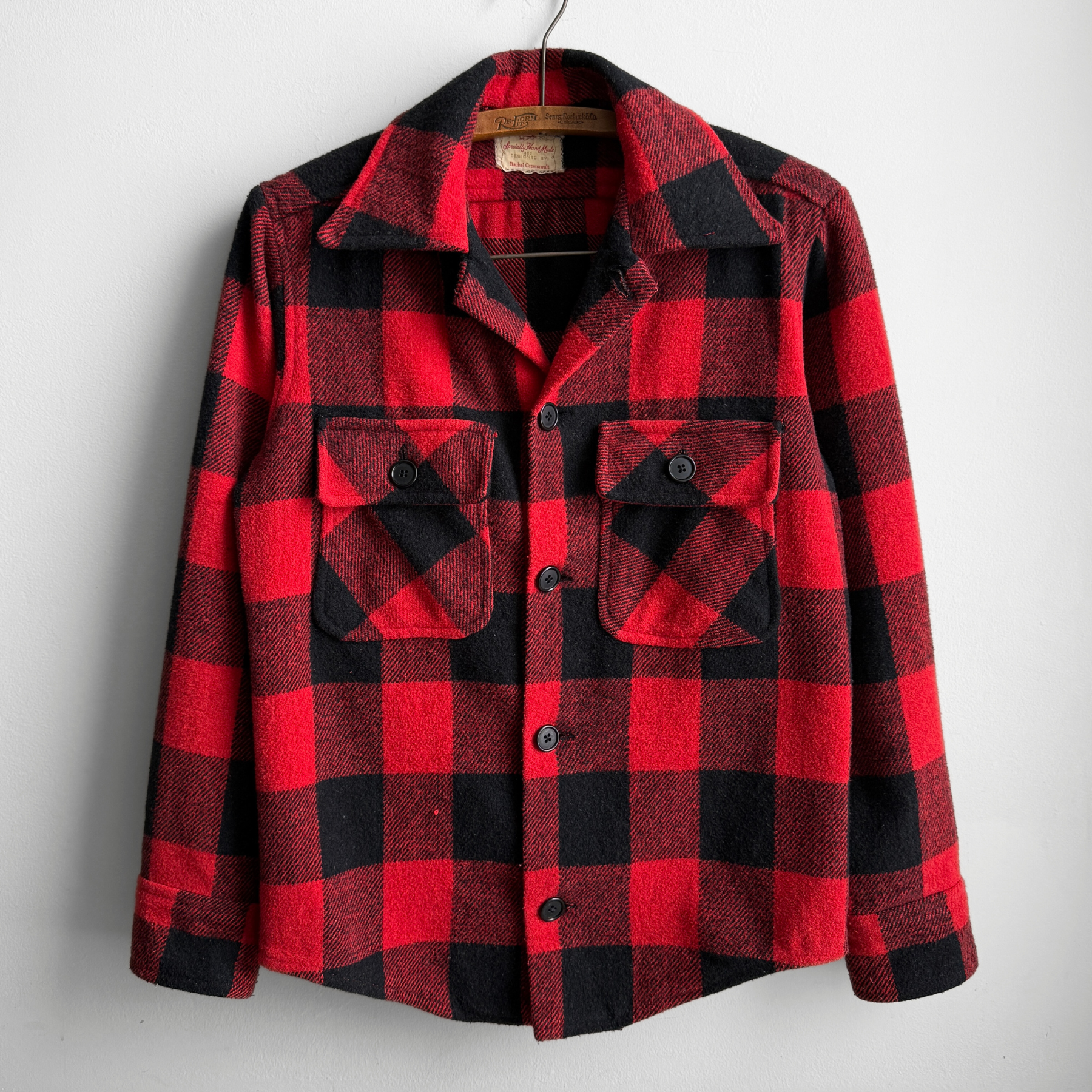 1960s Red & Black Buffalo Plaid Flannel Shirt