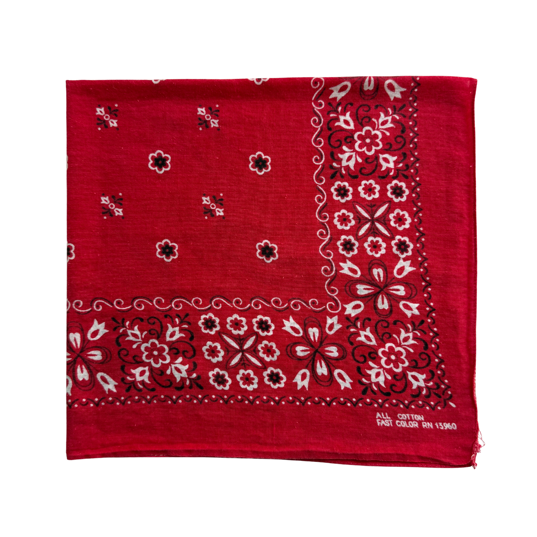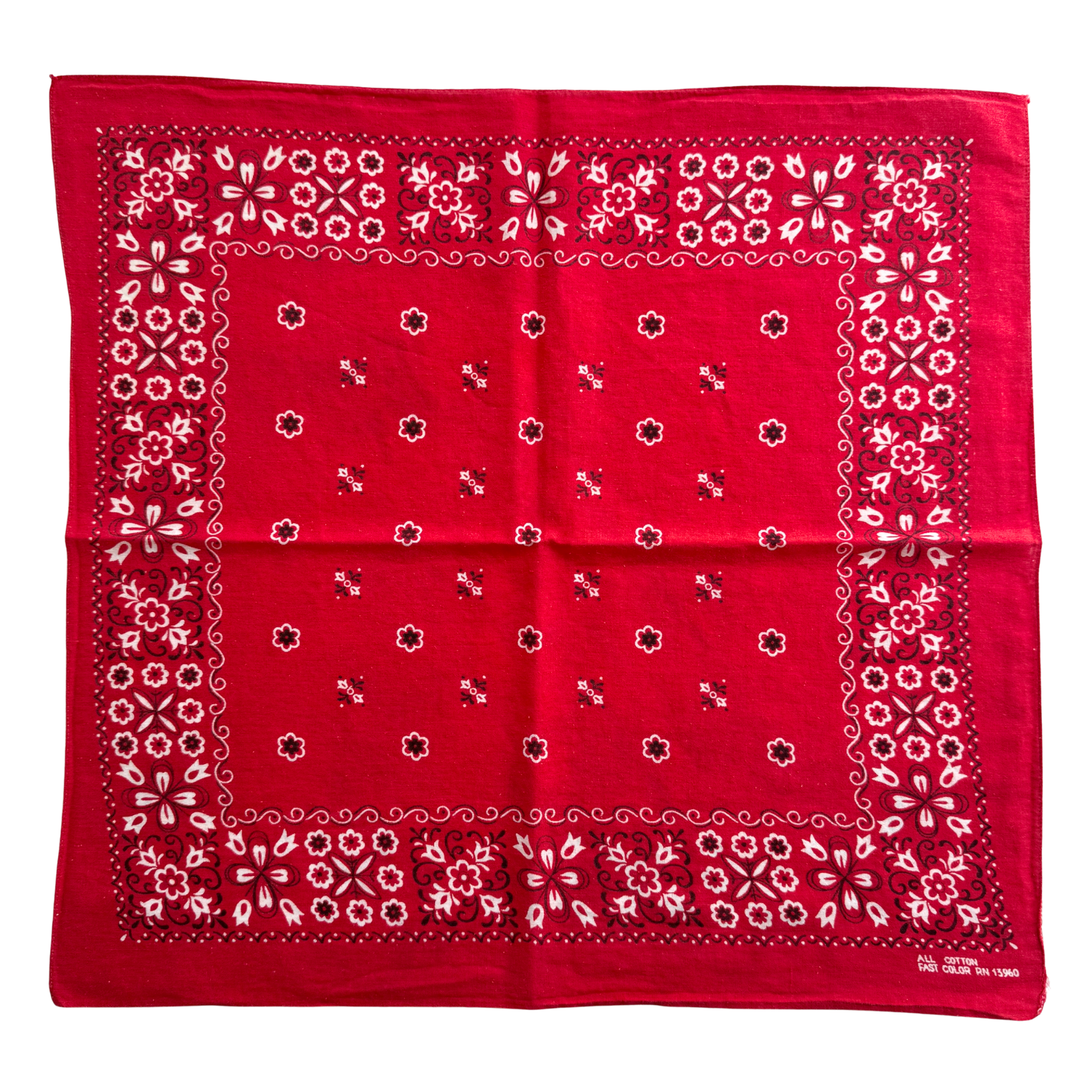 1960s Red Floral Print Cotton Bandana
