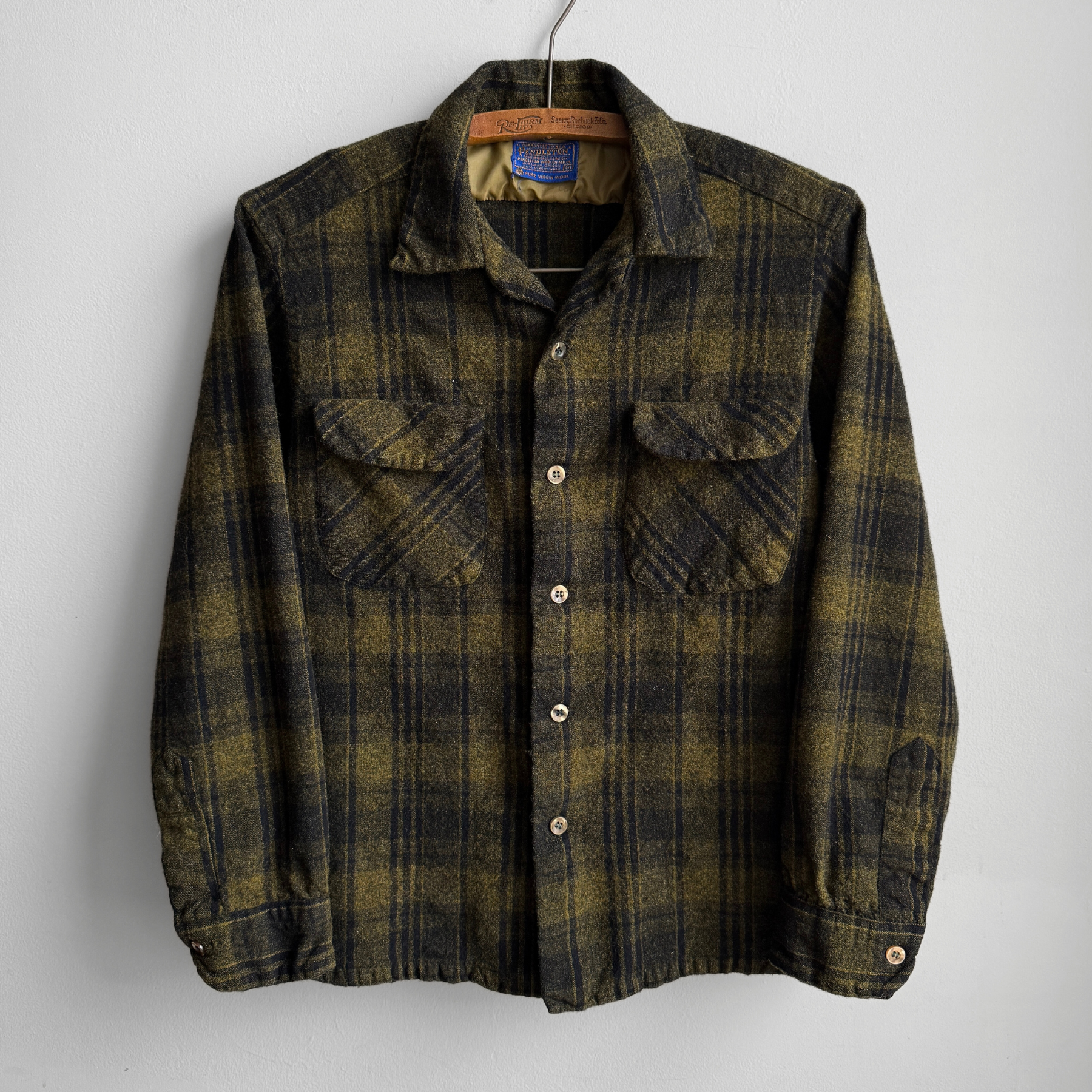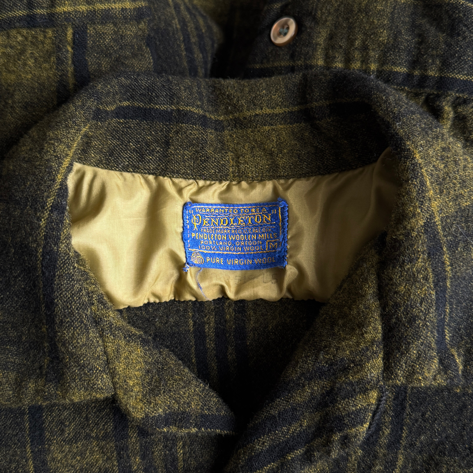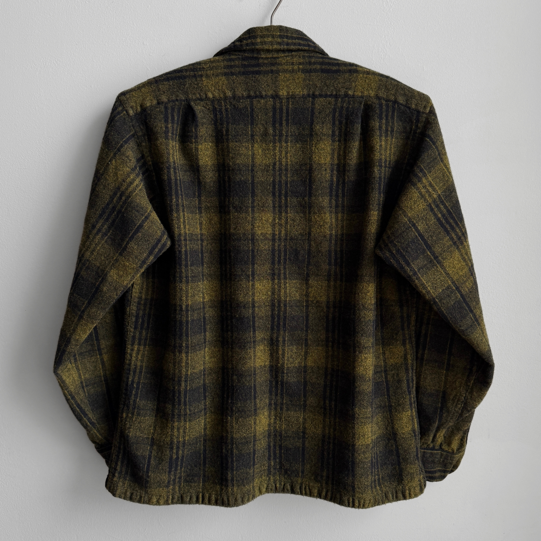 1960s Yellow & Black Plaid Wool Flannel Shirt