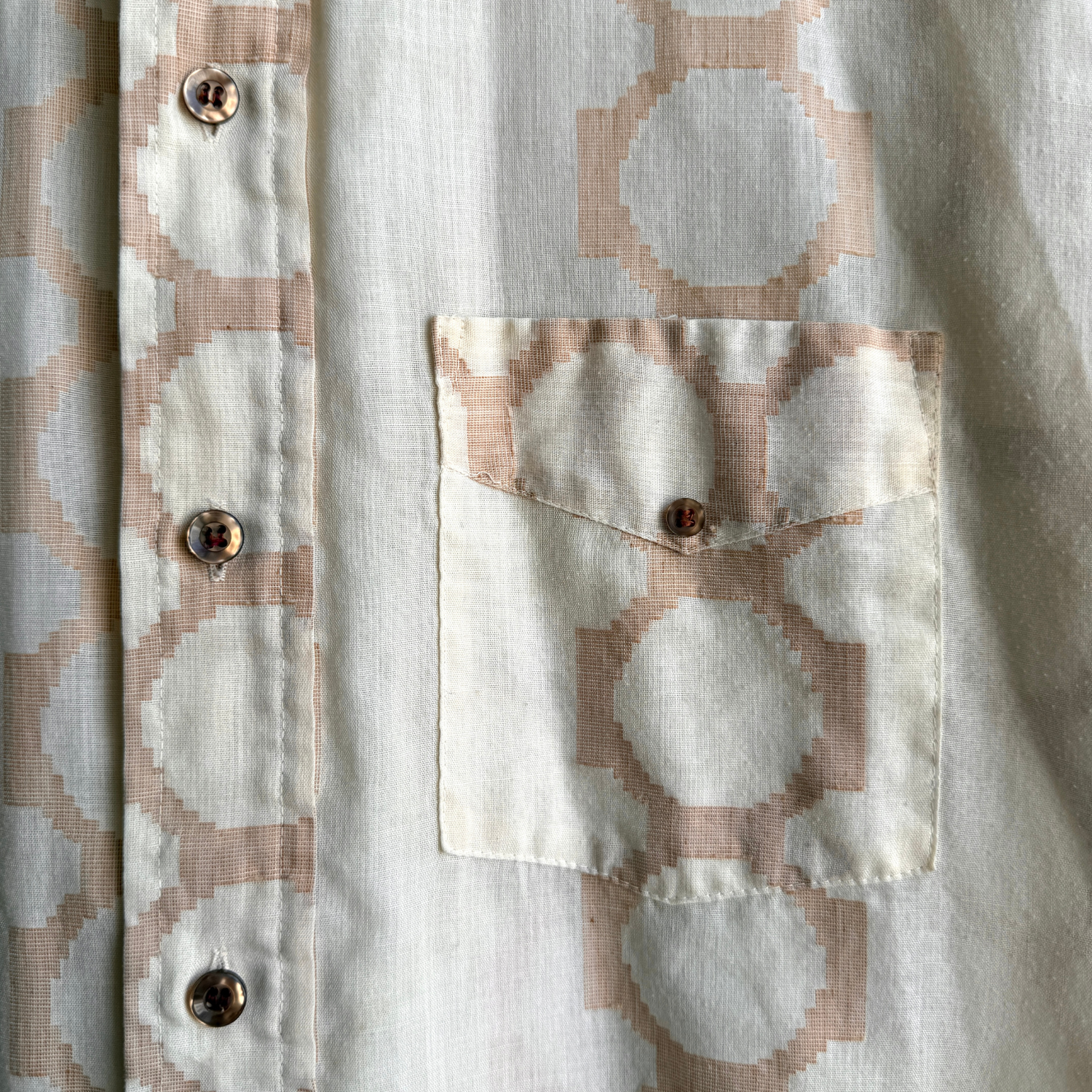 1970s Beige Geometric Print Shirt