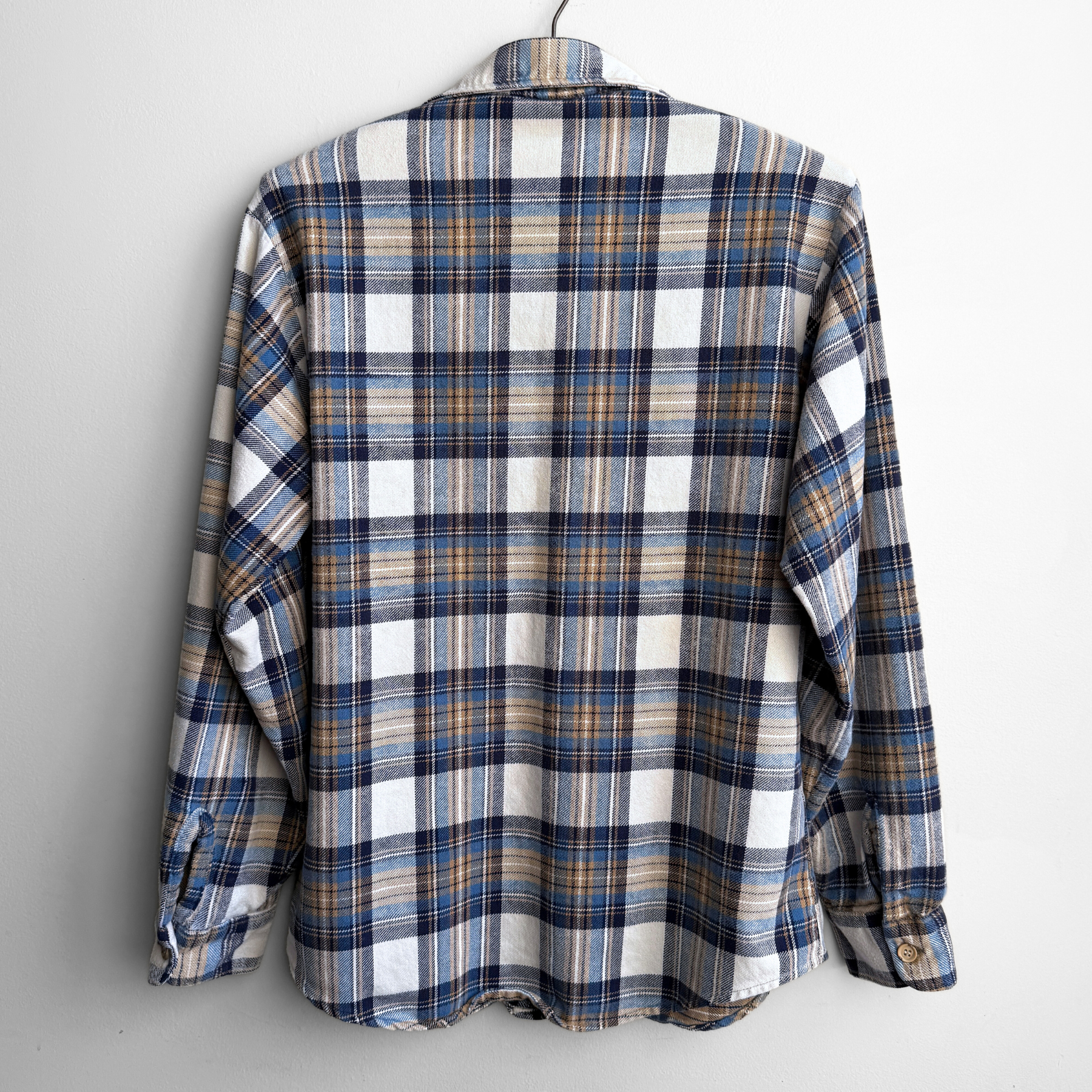 1970s Blue & White Cotton Plaid Flannel Shirt