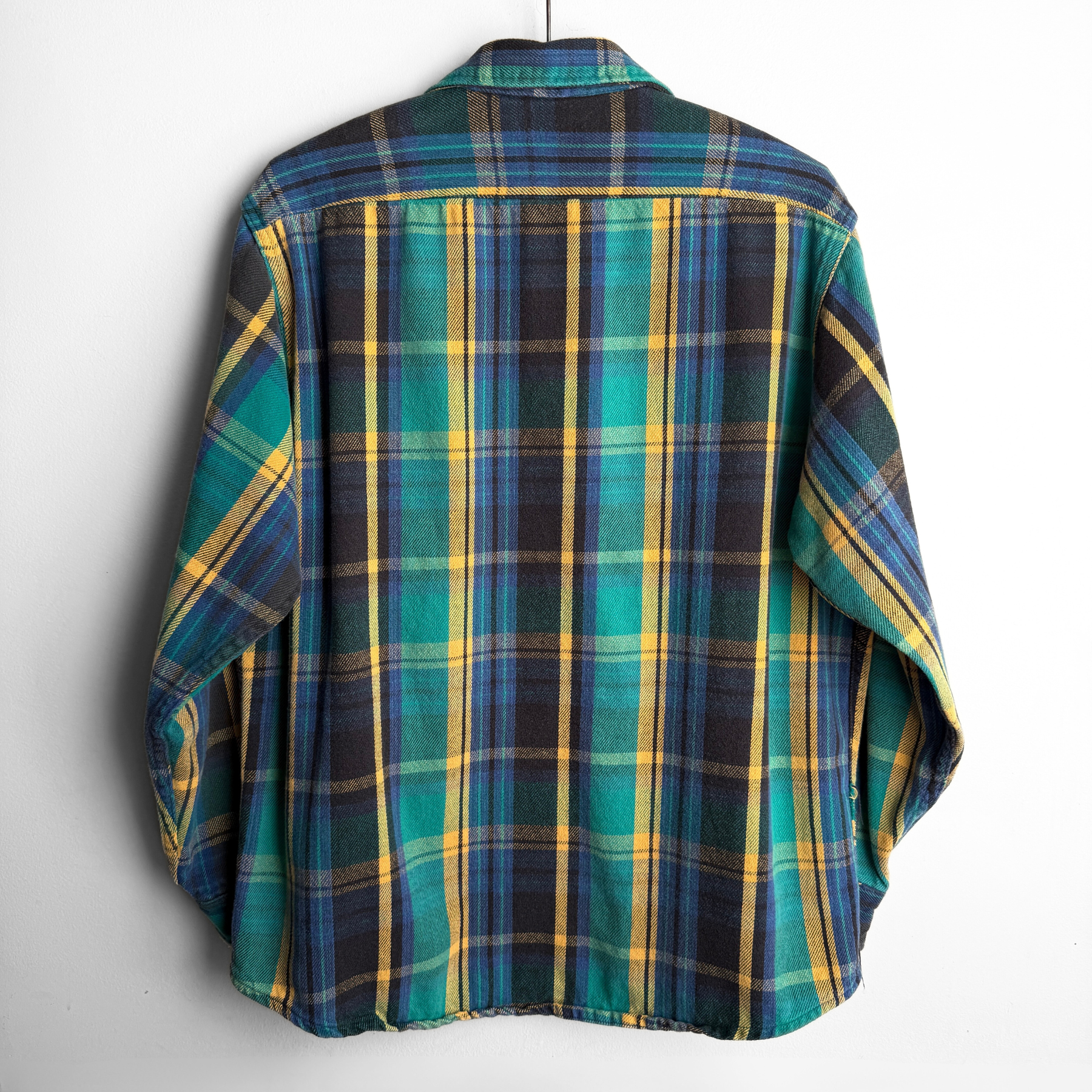 1970s Green & Blue Cotton Plaid Flannel Shirt
