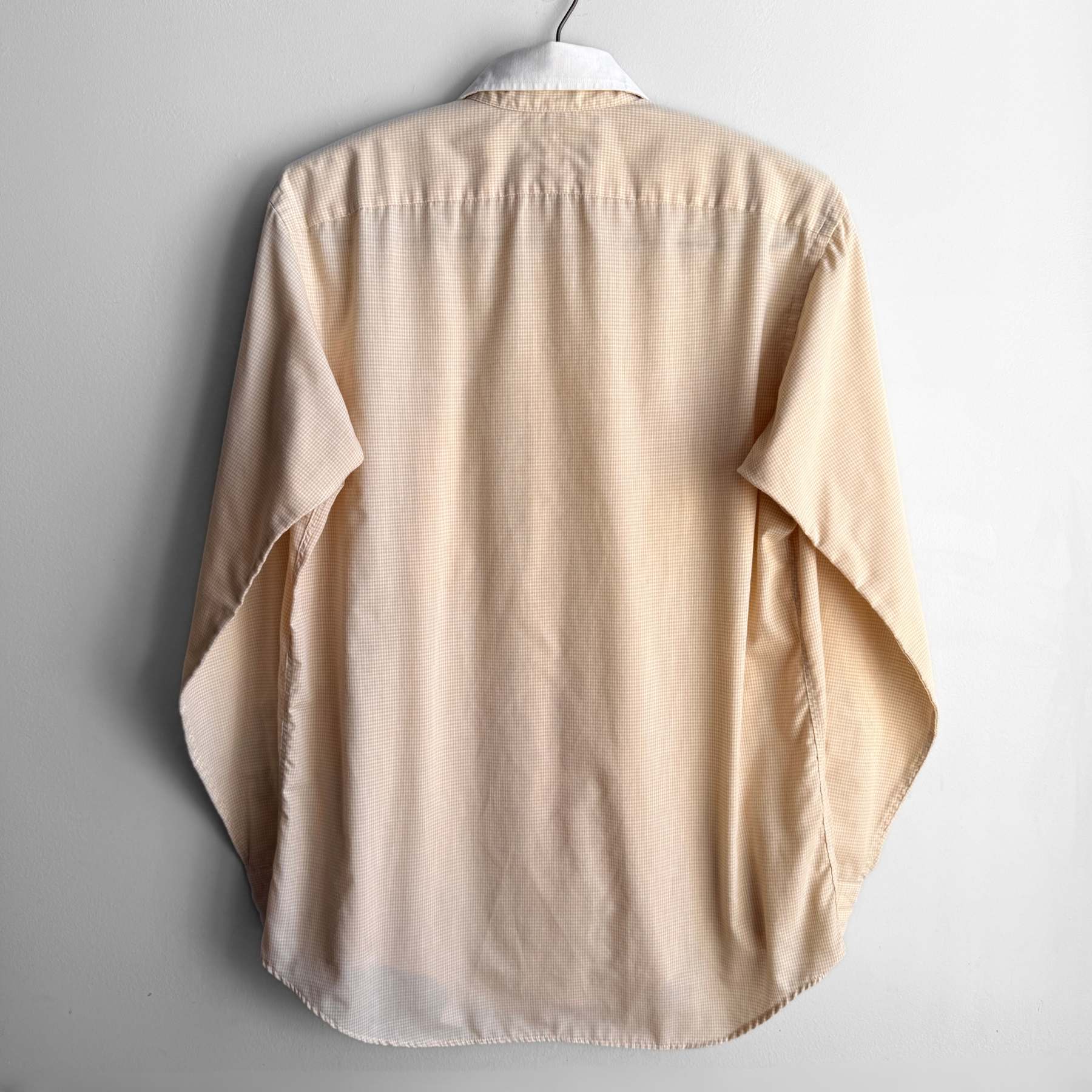 1970s Light Orange Check Print Dress Shirt