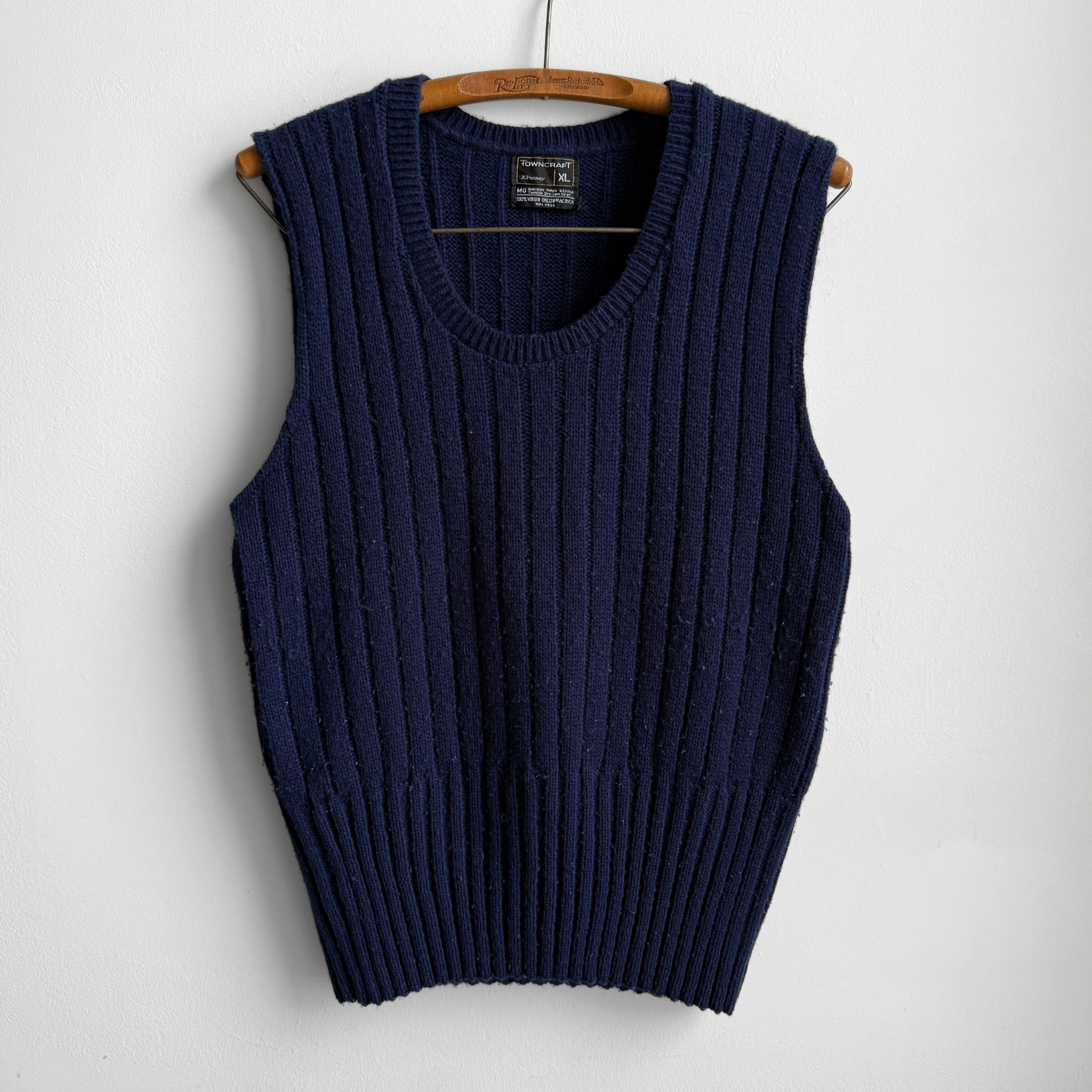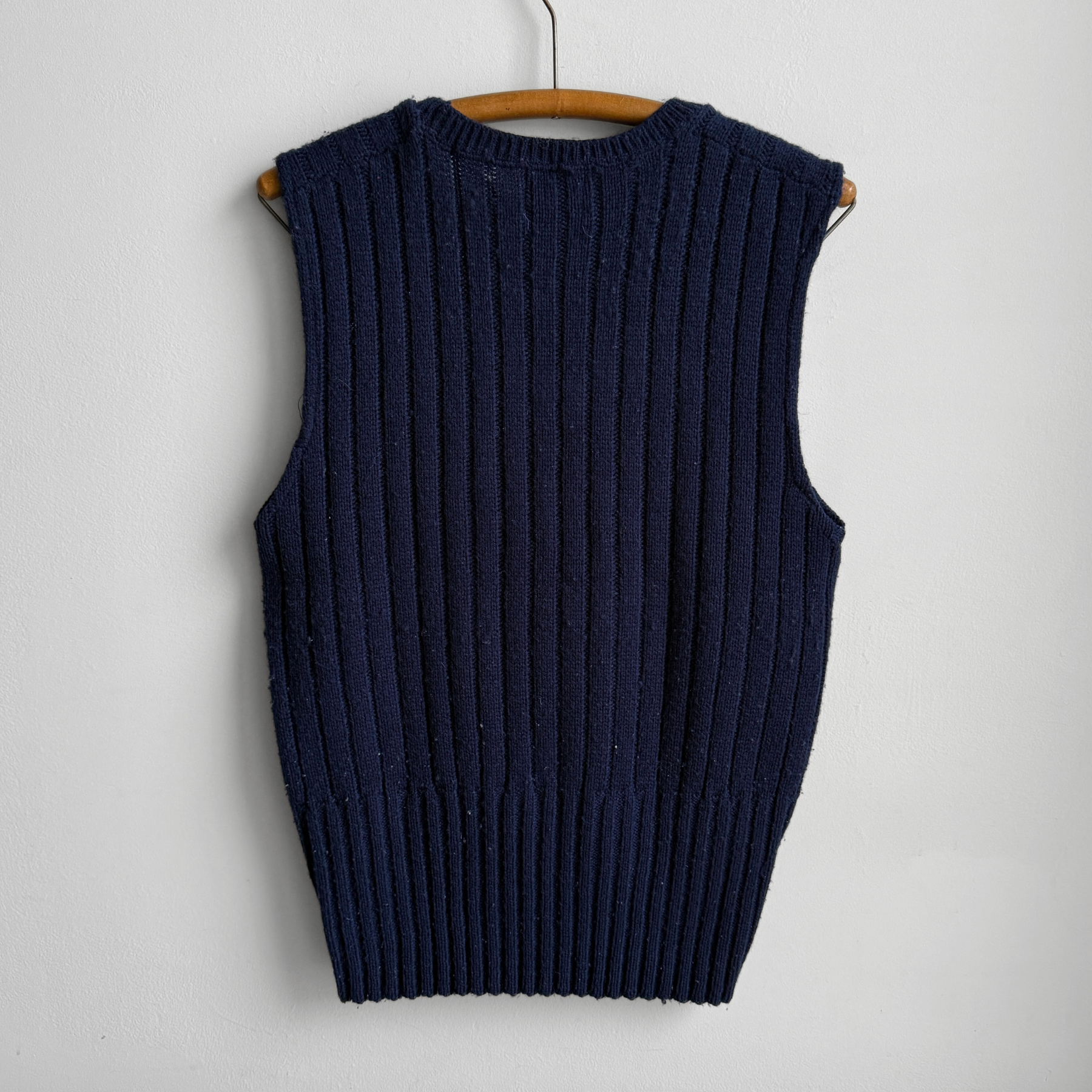 1970s Navy Blue Ribbed Knit Sweater Vest