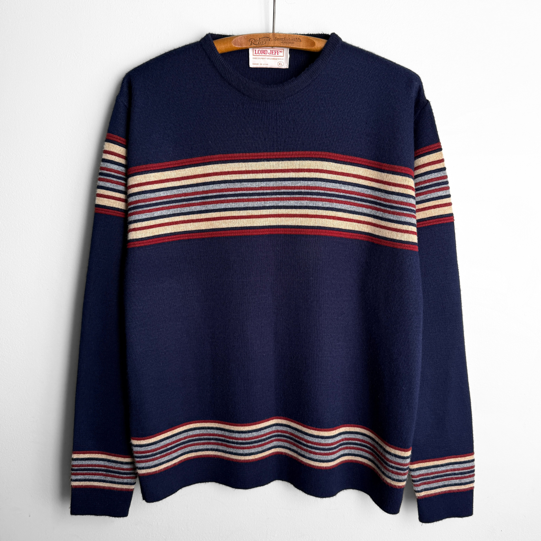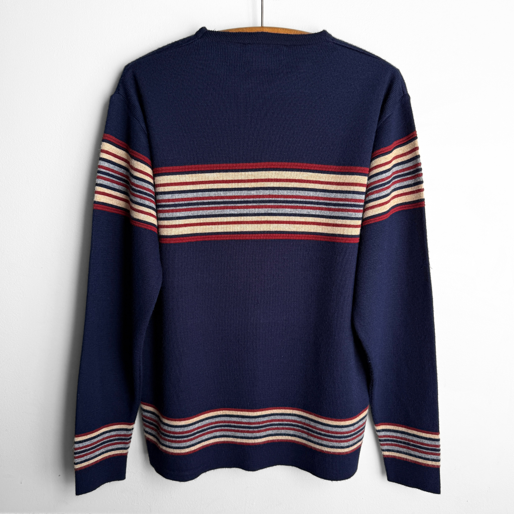 1970s Navy Blue Striped Knit Sweater