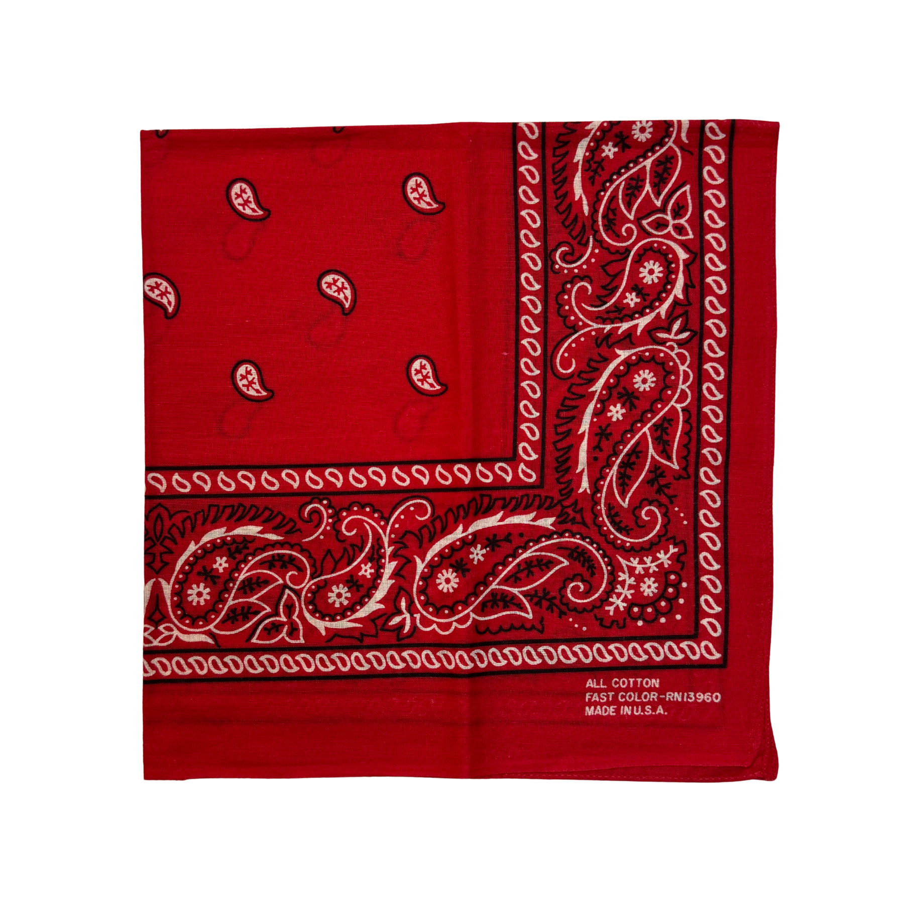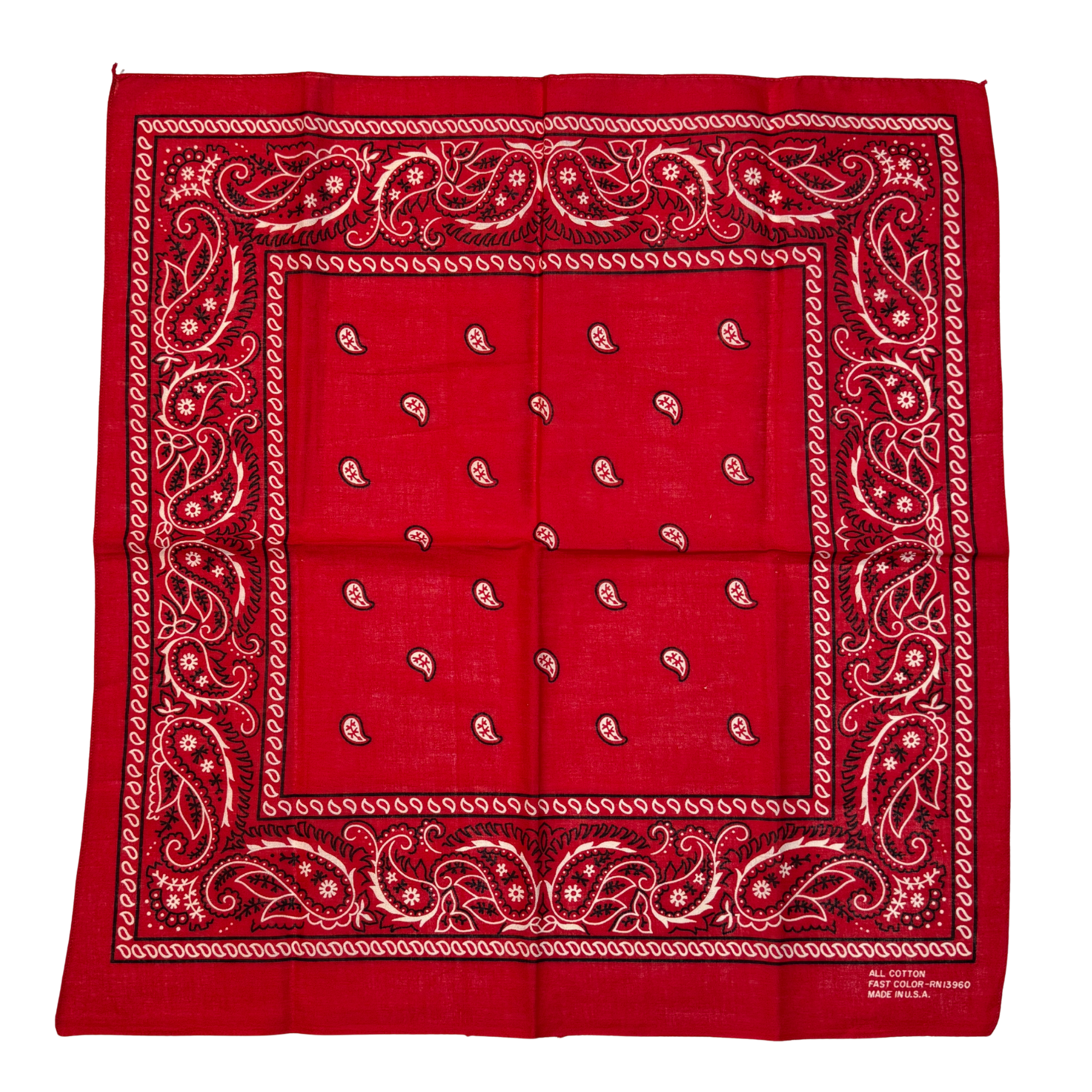 1970s Red Paisley Print Cotton Bandana