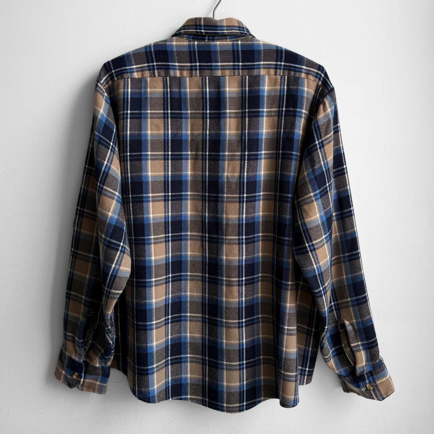 1980s Blue & Brown Acrylic Plaid Flannel Shirt