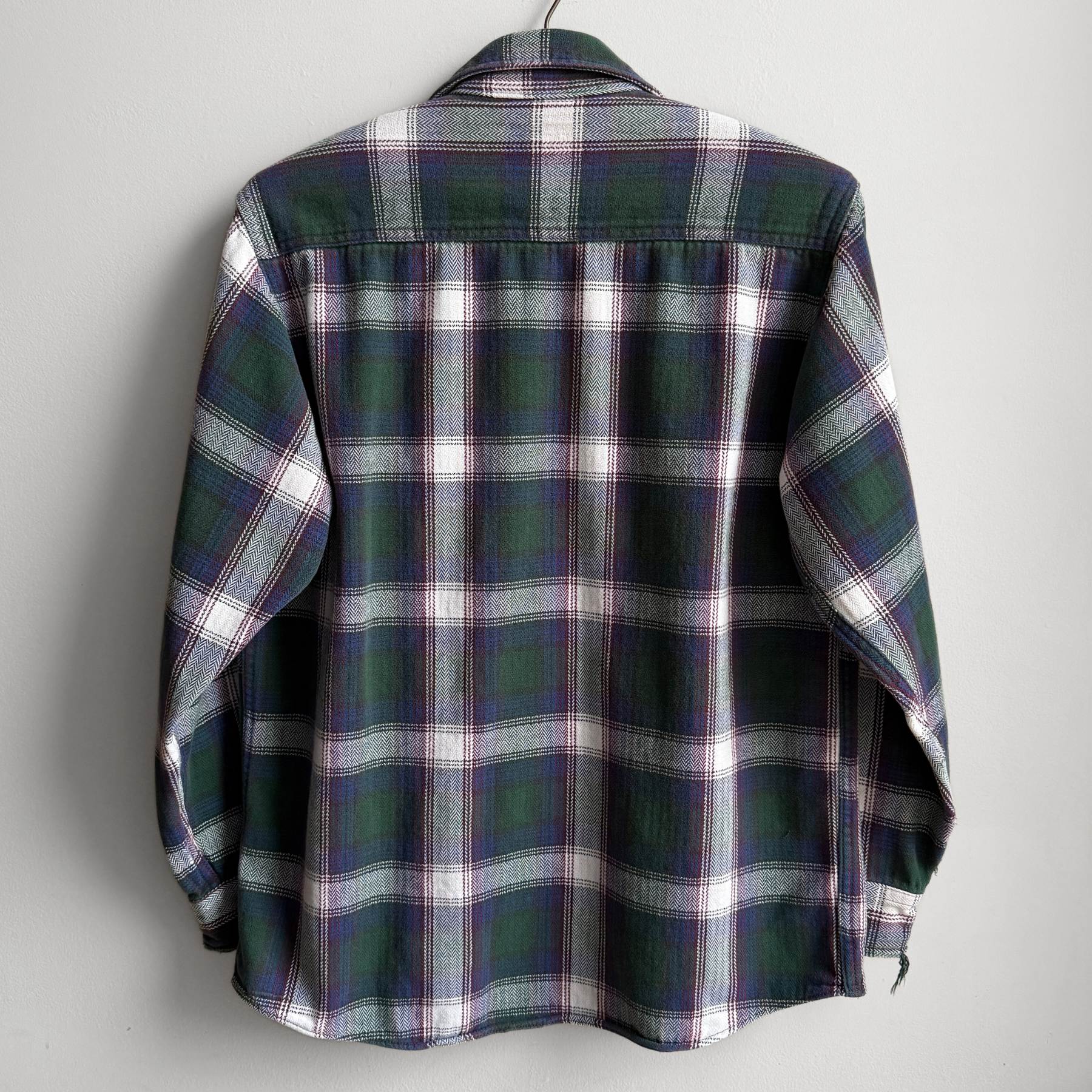 1980s Green & Purple Cotton Plaid Flannel Shirt