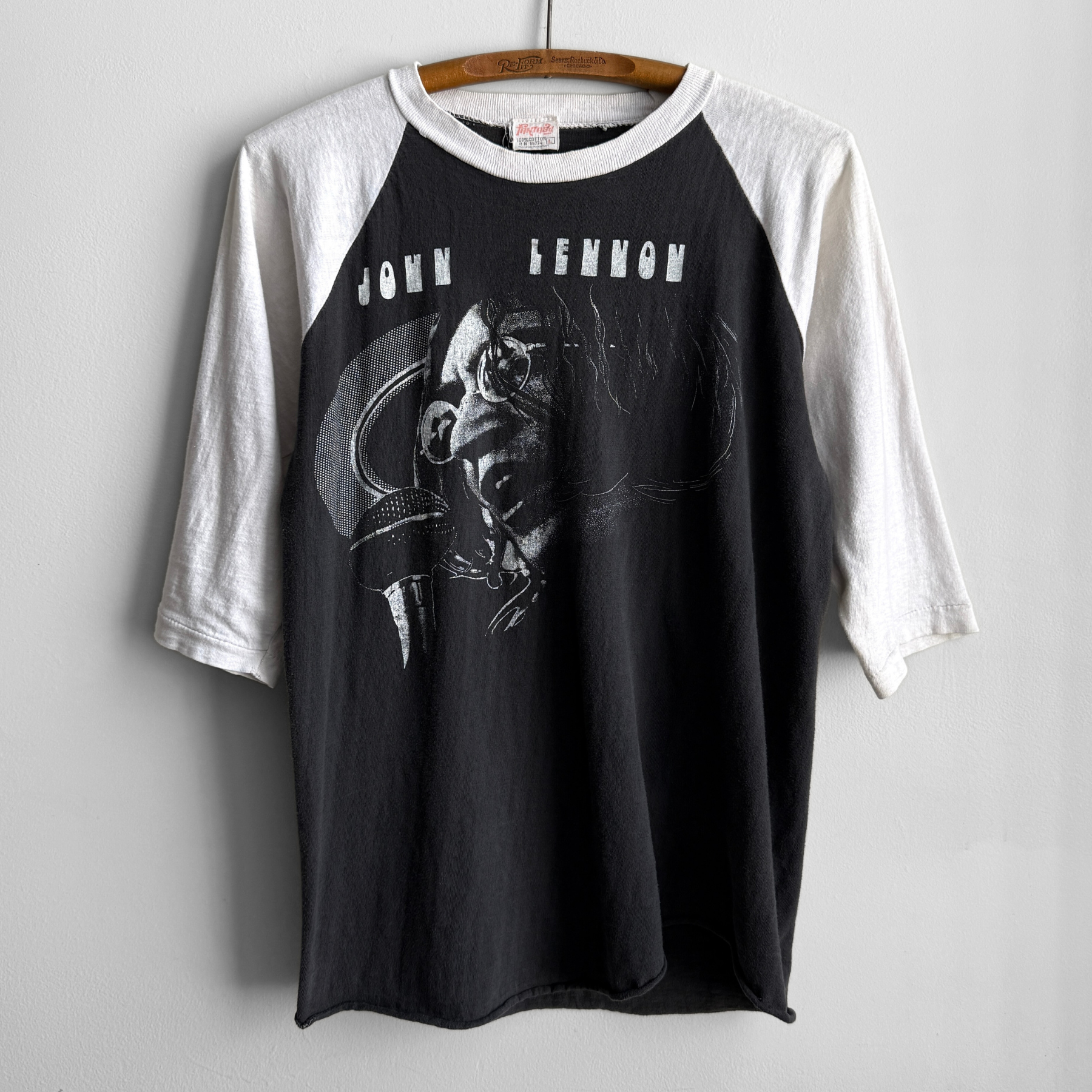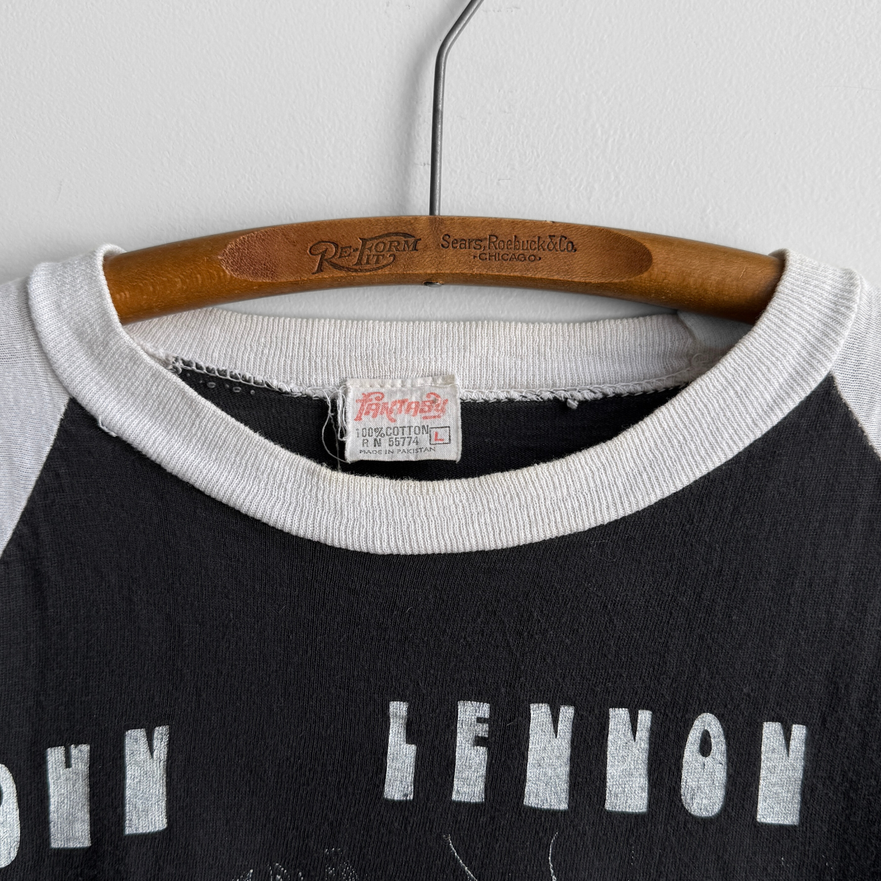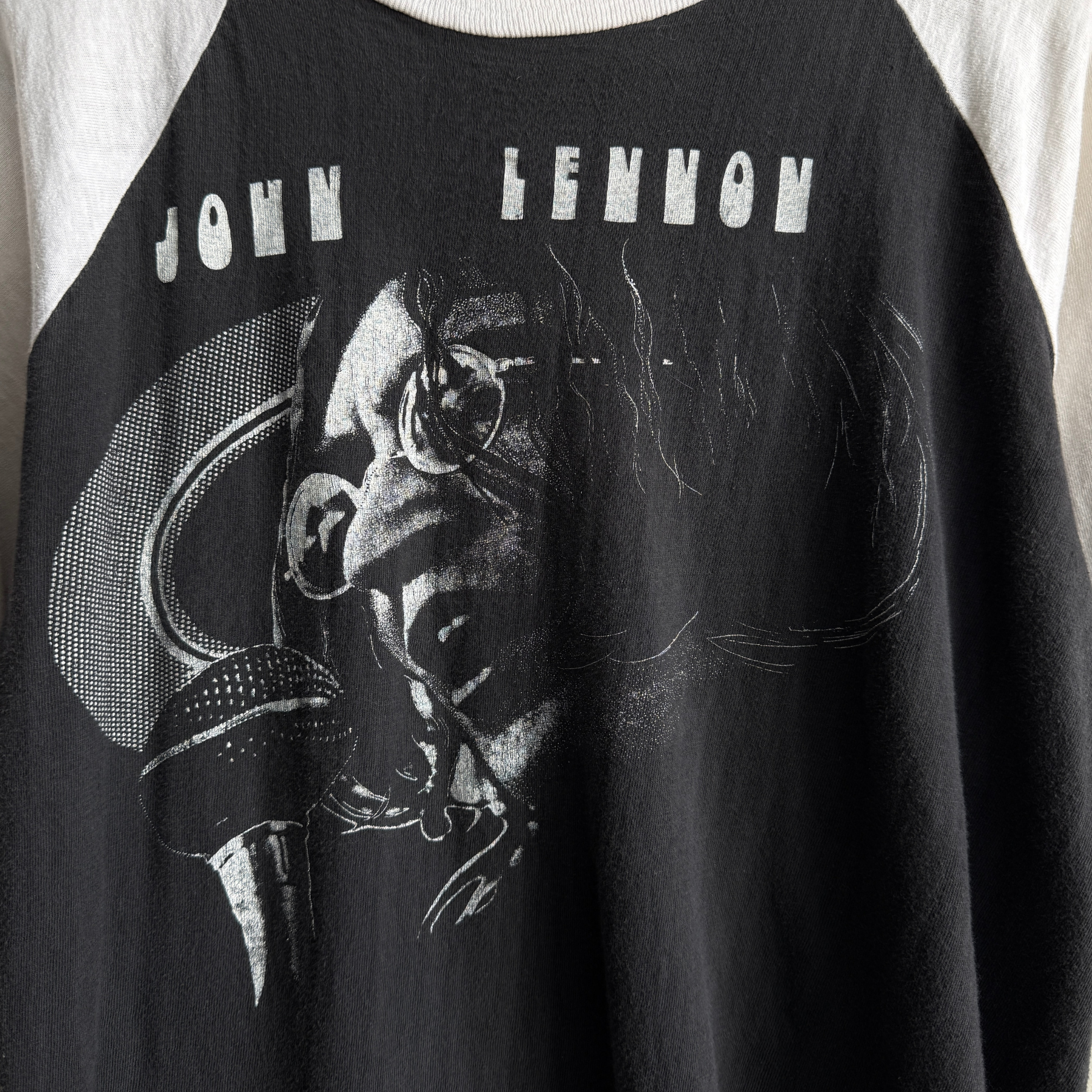 Features single stitch raglan sleeves and a large memorial graphic of John Lennon.