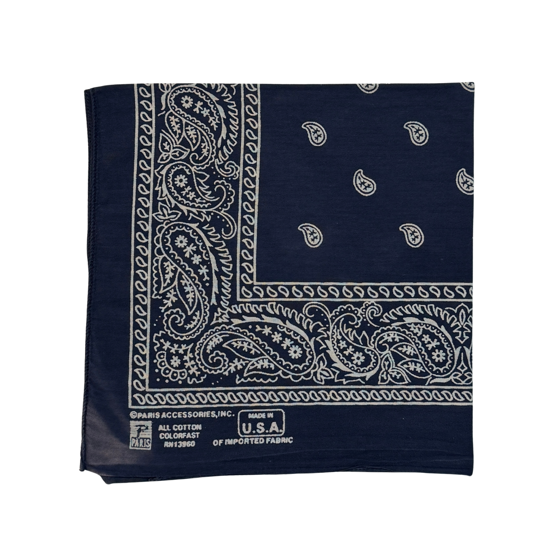 1980s Navy Blue Sun Faded Paisley Print Cotton Bandana