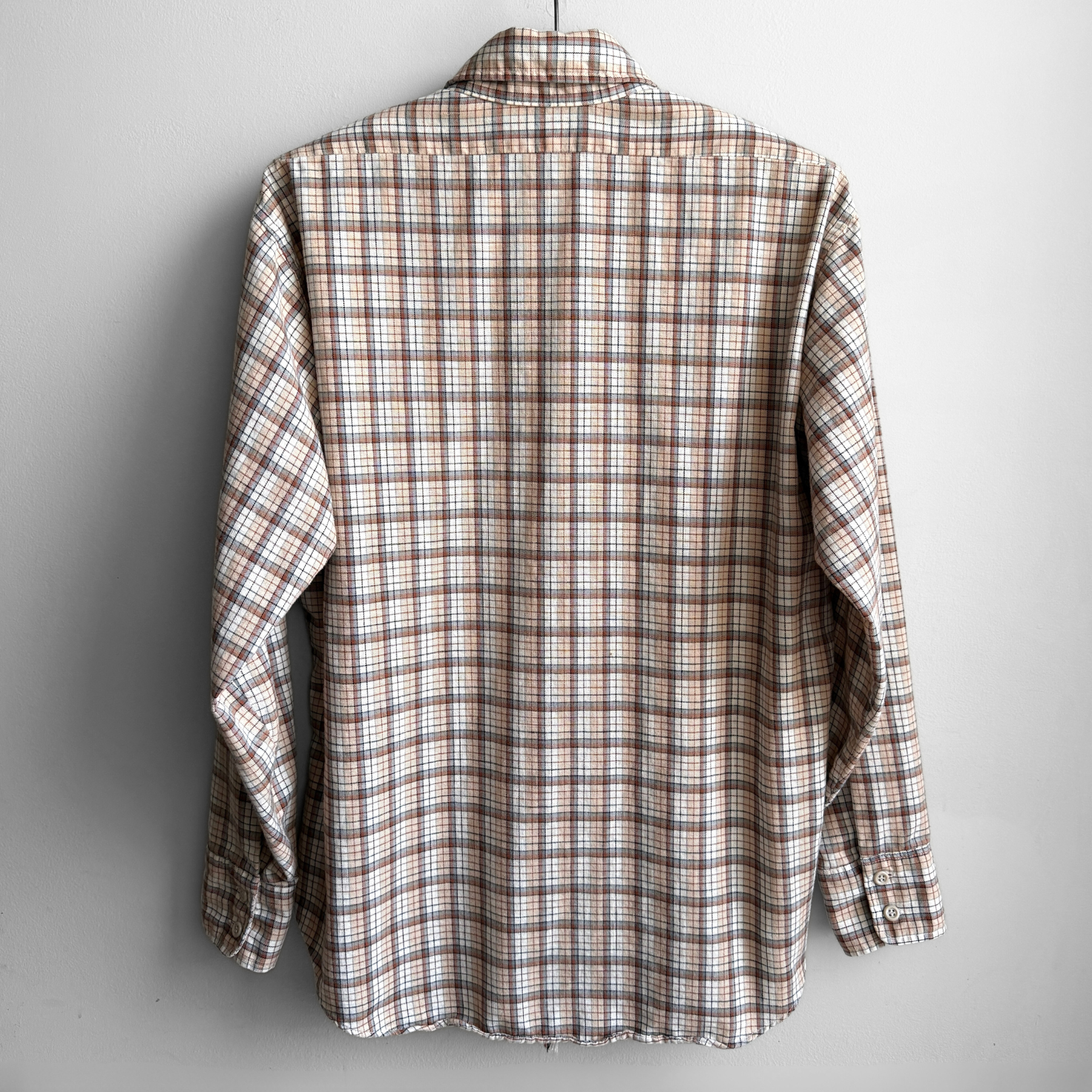 1980s Tan & Brown Cotton Plaid Flannel Western Shirt