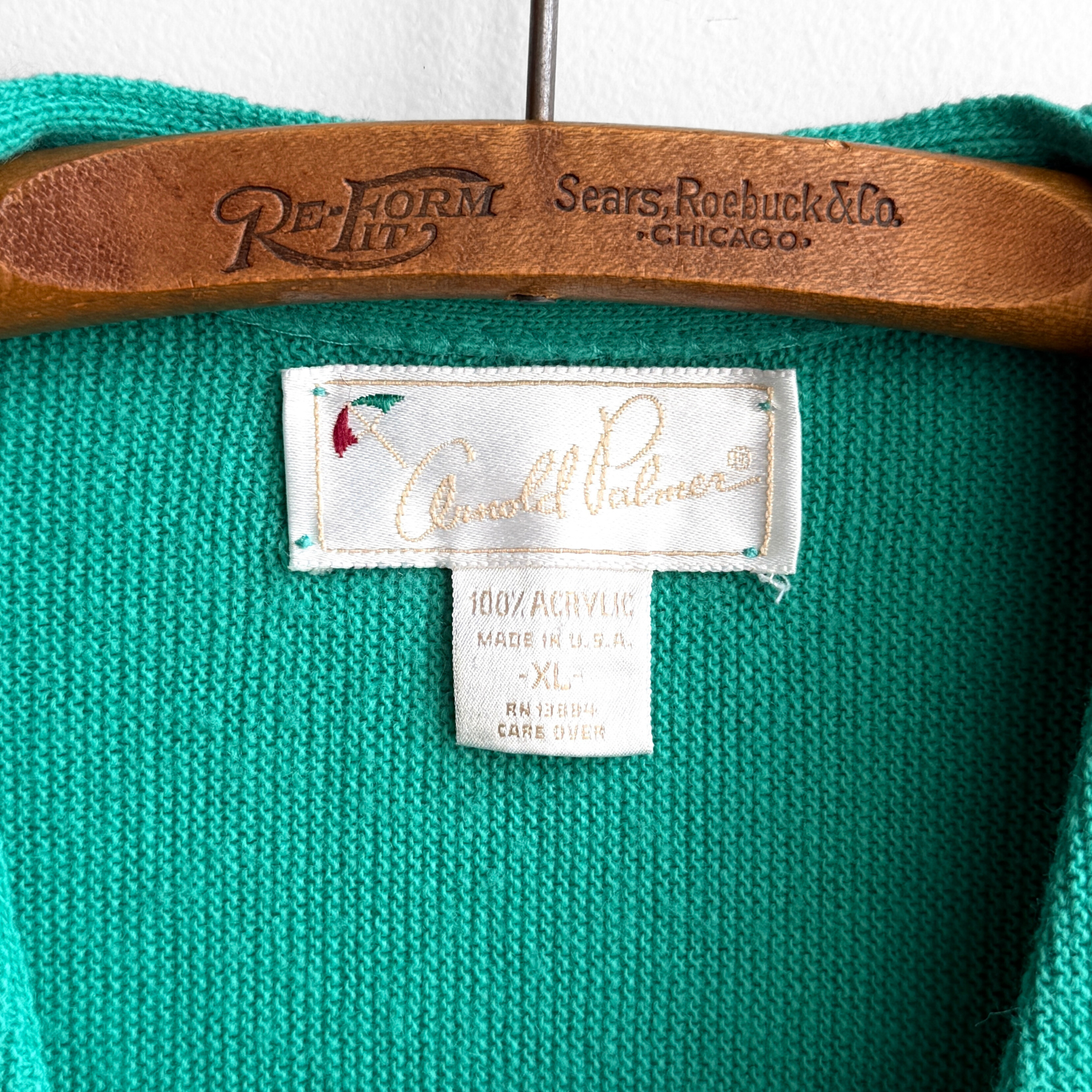 1980s Teal Green Acrylic Knit Cardigan