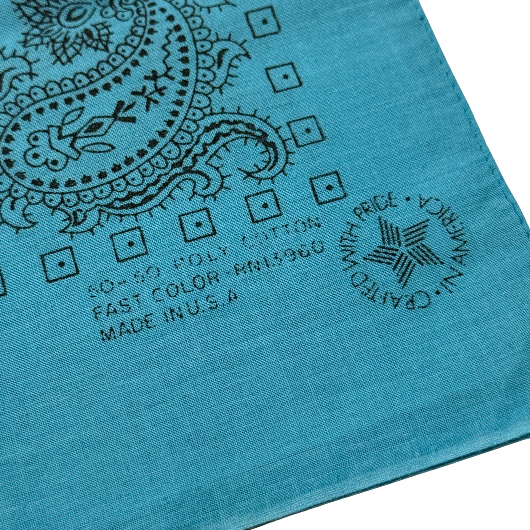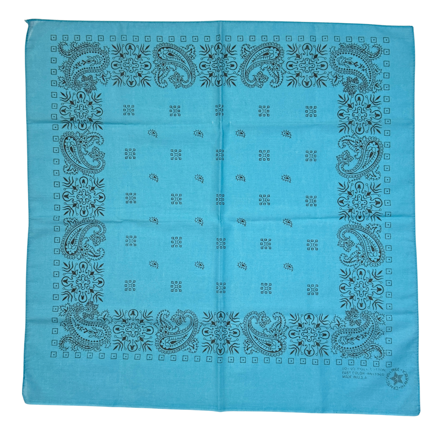 1980s Turquoise Blue Paisley Print Cotton Bandana
