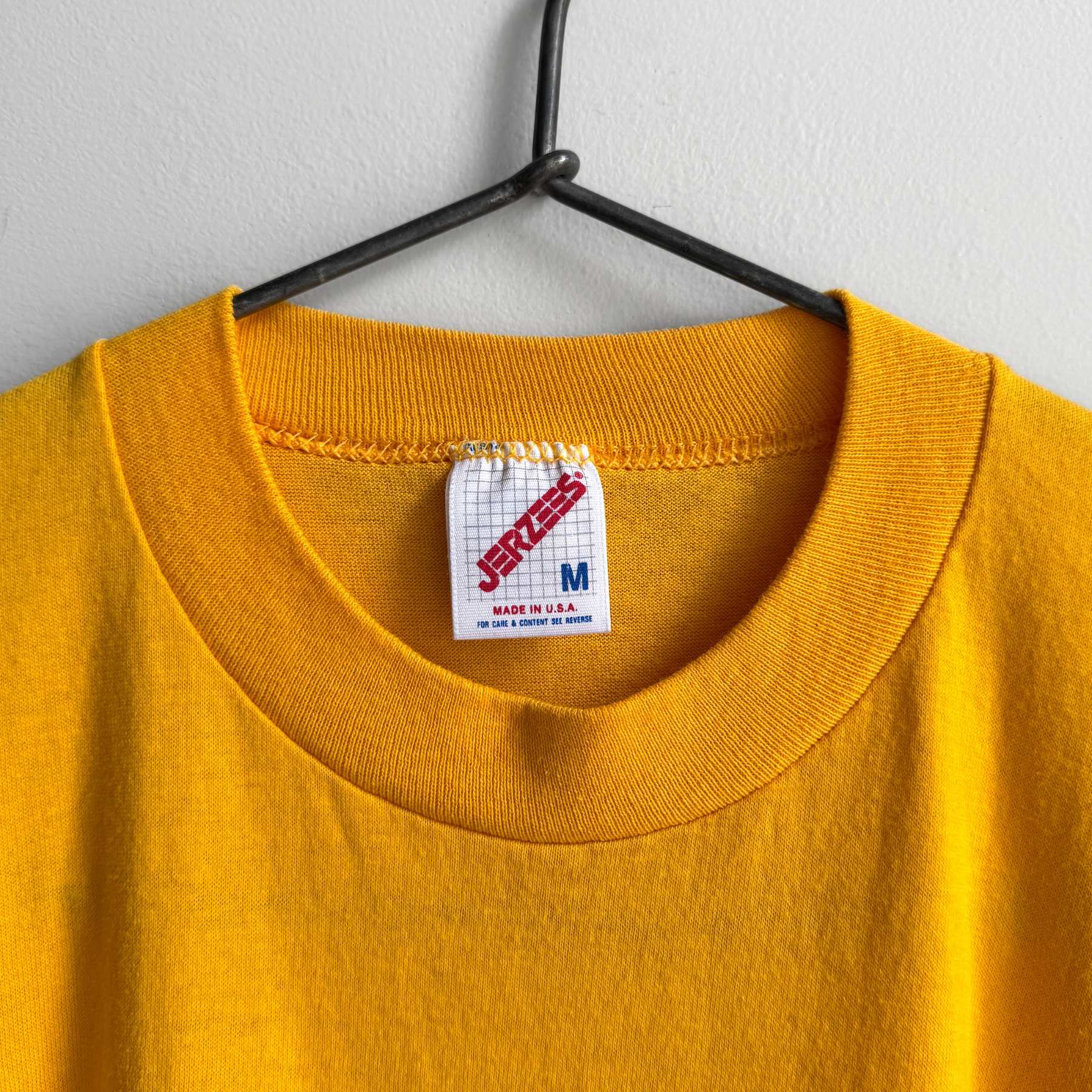 Features a soft poly cotton material, dark yellow color, single stitch sleeves, and center print United States Constabulary graphic.
