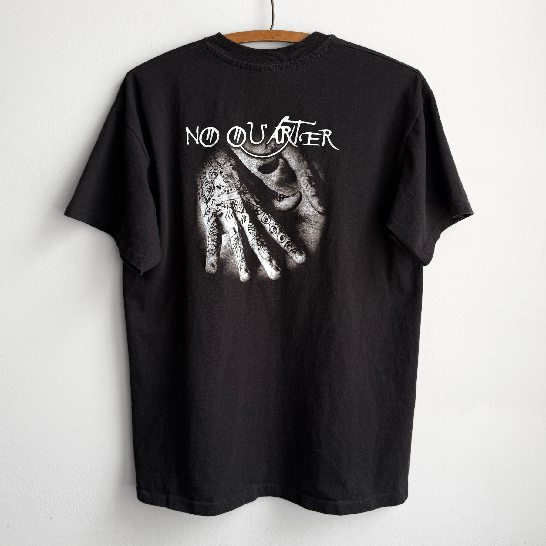 Features a faded black cotton material, double sides graphic of Jimmy Page and Robert Plant for their 'No Quarter' tour in 1995, single stitch sleeves, and overall in excellent condition. See photos for more.