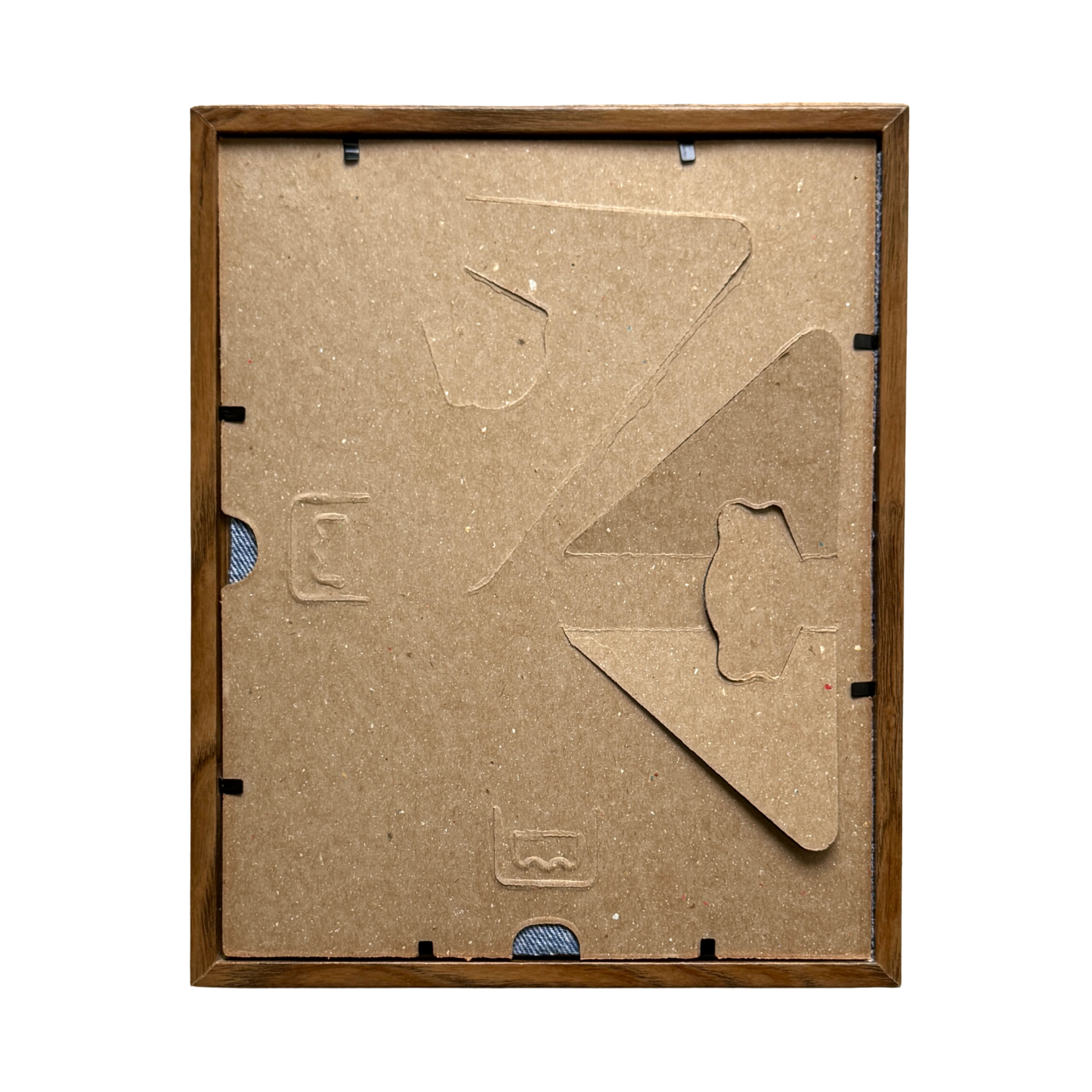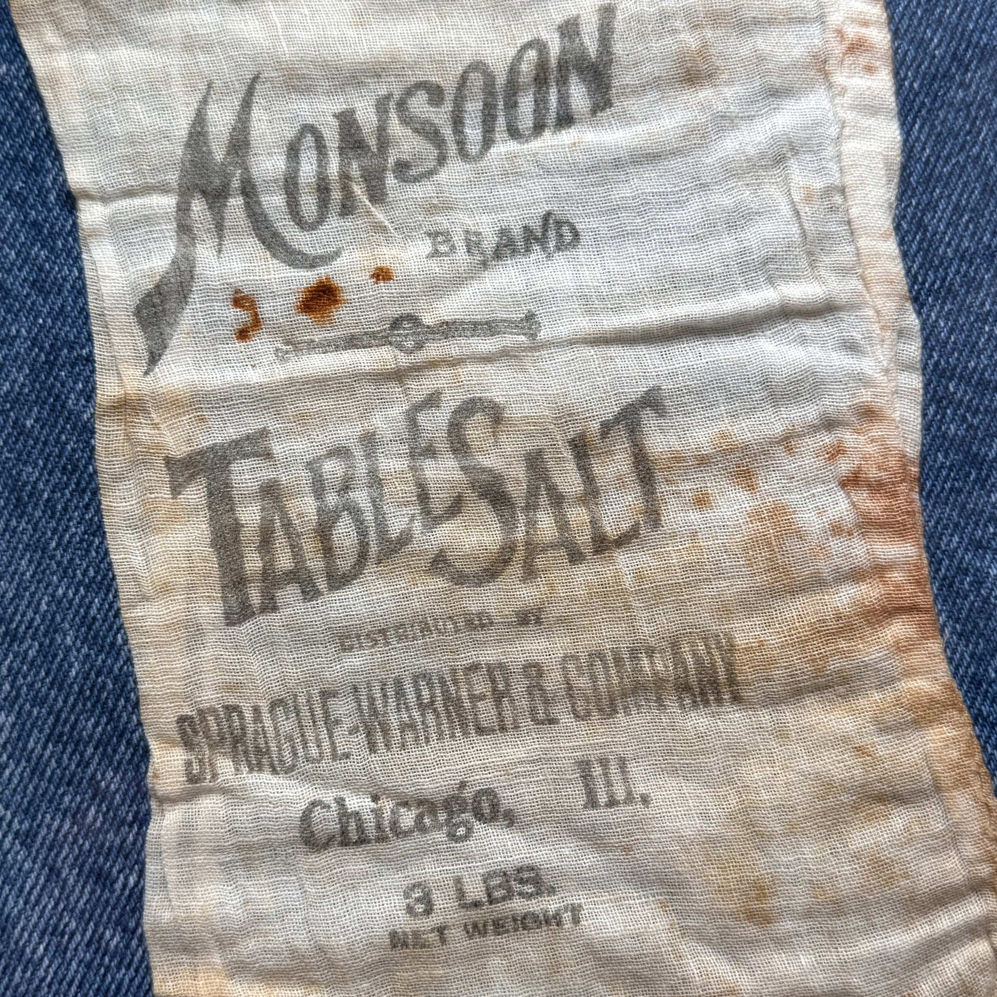 Also features a vintage denim background material for contrast.