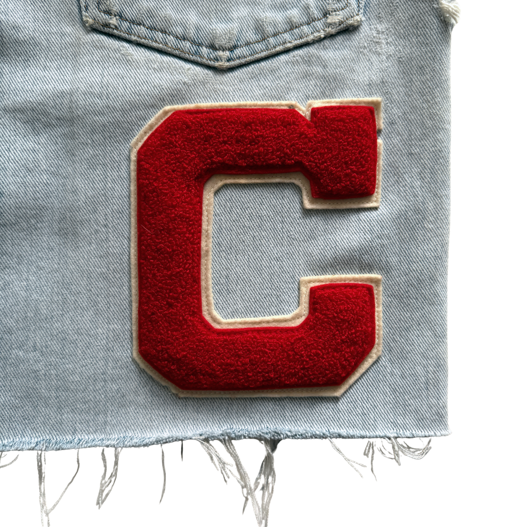 1990s Smiley Face Patchwork Jean Shorts (32)